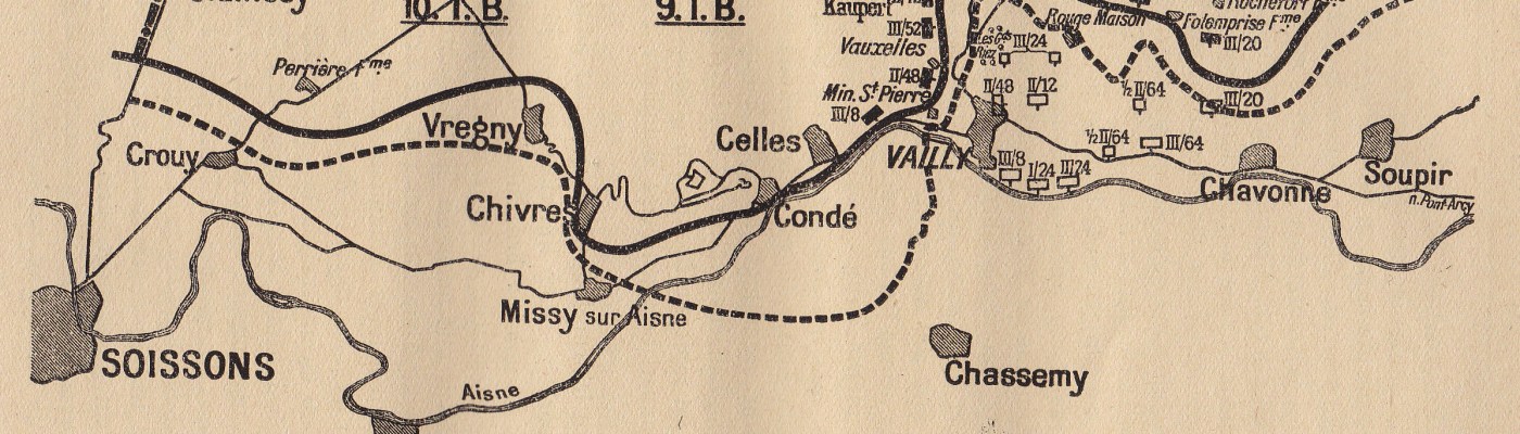 In order to secure their position, the German 1st Army executed a large-scale ‘attack with limited objectives.’ On 30 October, troops of the 5th and 6th Infantry Divisions of the III Army Corps, supported by considerable heavy artillery from the 1st Army, attacked the French 69th Reserve Division around Vailly. Their objectives were to seize the heights around Vailly and in the process throw the French defenders back across the Aisne in this area of the front. The infantry assault began at 0830 after an intensive artillery preparation. Within 7 hours, the German troops had taken all their objectives.