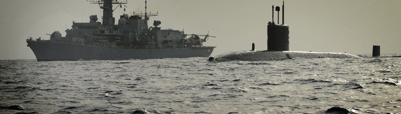 Image: Trafalgar Class Fleet Submarine HMS Turbulent is pictured in front of Type 23 frigate HMS St Albans, during an anti-submarine exercise in the Gulf of Oman. Courtesy of defenceimagery.mod.uk