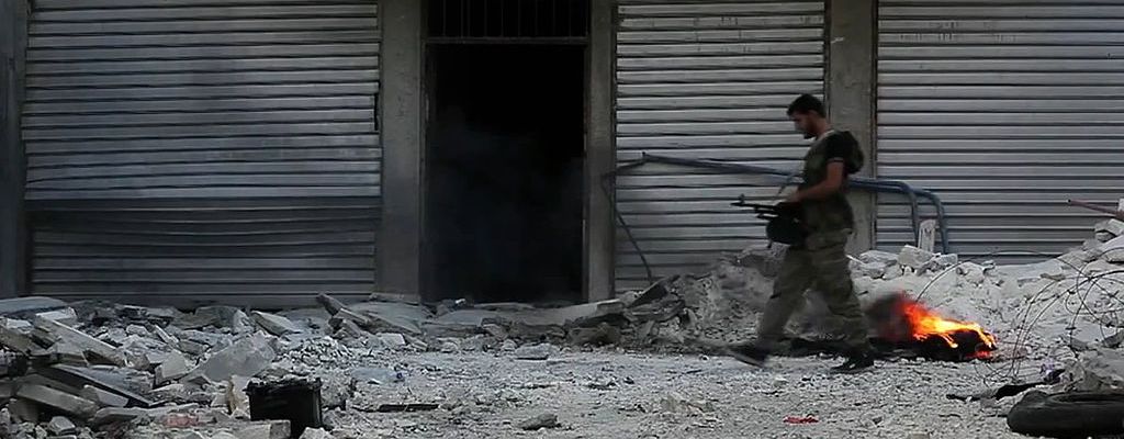 Image: “Free Syrian Army soldier walking among rubble in Aleppo” by Voice of America News: Scott Bobb reports from Aleppo, Syria. Licensed under Public Domain via Wikimedia Commons.