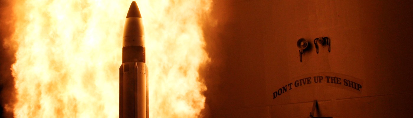 Image: SM-3 missile ignition for a satellite destruction mission, via Wikimedia Commons.