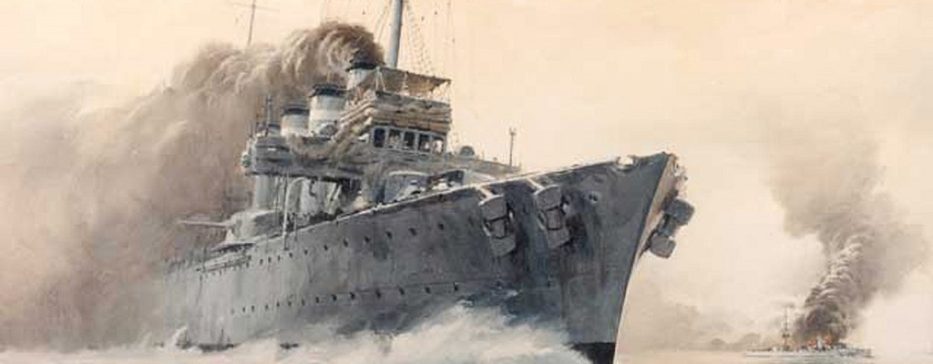 Image: Nov. 9, 1914: The SYDNEY [I] – EMDEN [I] battle, painted by Phil Belbin, via flickr.