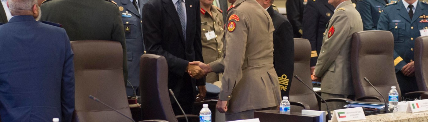 Image: Barack Obama meets with military leaders from 22 nations to discuss strategy in the Middle East during a conference at Joint Base Andrews, Md., October, 2014, via wikimedia commons.