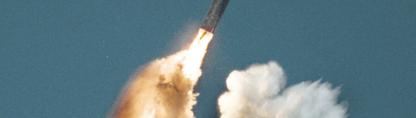 Image: A Trident II missile fires its first stage after an underwater launch from a Royal Navy Vanguard class ballistic missile submarine via wikimedia commons.
