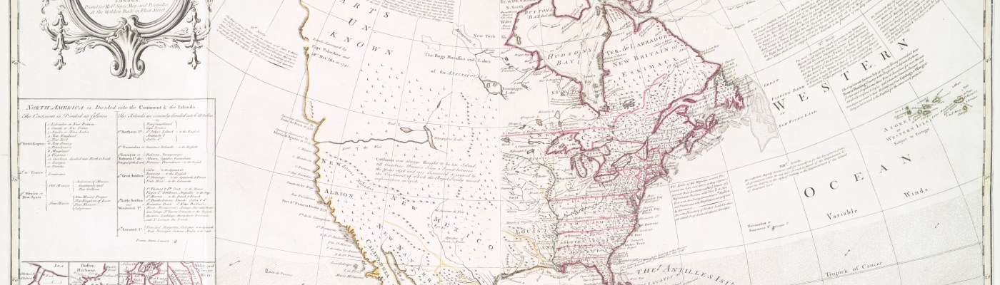 Image: “A new map of North America” – produced following the Treaty of Paris in 1763, via wikimedia commons.