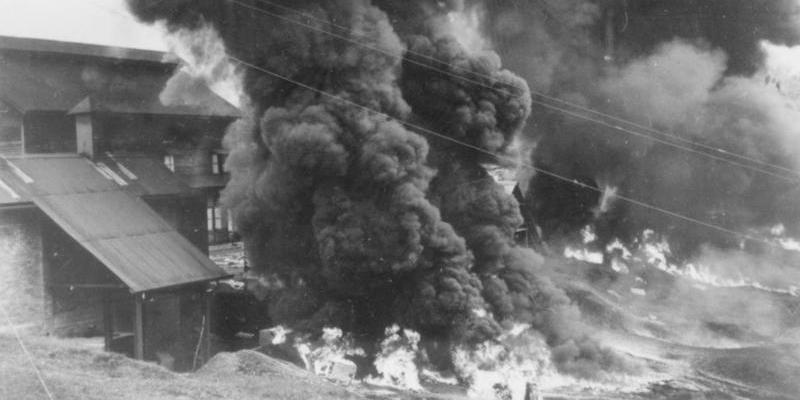 Image: Stocks of rubber, held by a factory on a rubber plantation in Malaya, are burnt during the British retreat to Singapore, via the Imperial War Museum.
