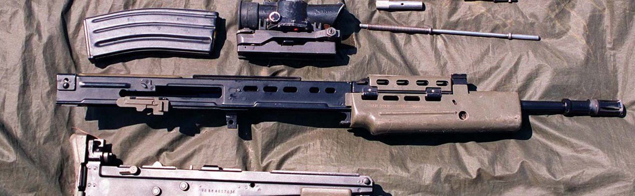 Image: SA-80 rifle stripped (1996), via wikimedia commons.