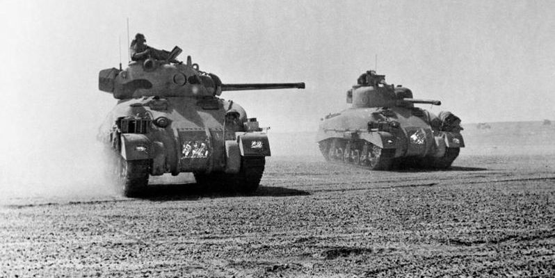 Image: Sherman tanks of 9th Queen’s Royal Lancers during the Battle of El Alamein, 5 November 1942, via Wikimedia commons.