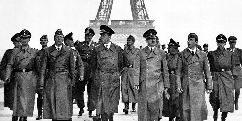 Image: Adolf Hitler and his entourage visiting the Eiffel Tower in Paris on June 23, 1940, following the occupation of France by the Nazis, via Wikimedia commons.