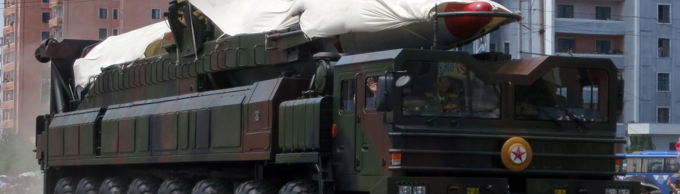Image: North Korean ballistic missile on display during a ‘Victory Day’ parade in 2013, via Wikimedia commons.