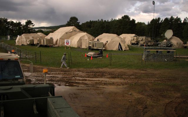 Image: HOHENFELS, Germany – Tucked away in a corner of the Hohenfels Training Area woods next to Camp Albertshof, the 16th Sustainment Brigade’s, or “Knight’s Brigade,” 18th Combat Sustainment Support Battalion field headquarters lies behind rows of razor wire and sand bag bunkers, via army.mil.