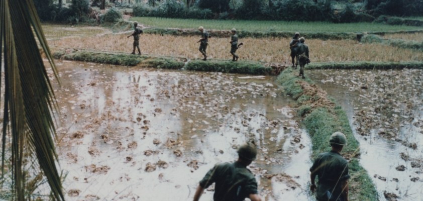 Image: U.S. Army soldiers on patrol in rice paddies outside of a rural Vietnamese village, during the Vietnam War, via Wikimedia.