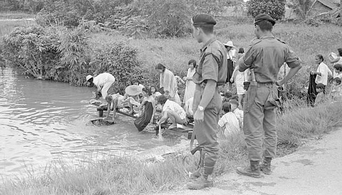 Image: Armed soldiers stand guard in Sarawak in 1965 via wikimedia commons.