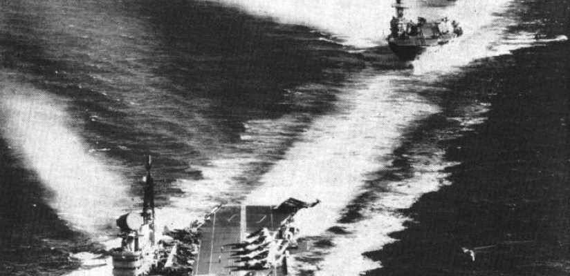 Image: HMS Victorious leads Ark Royal and Hermes, 1961, via wikimedia commons.