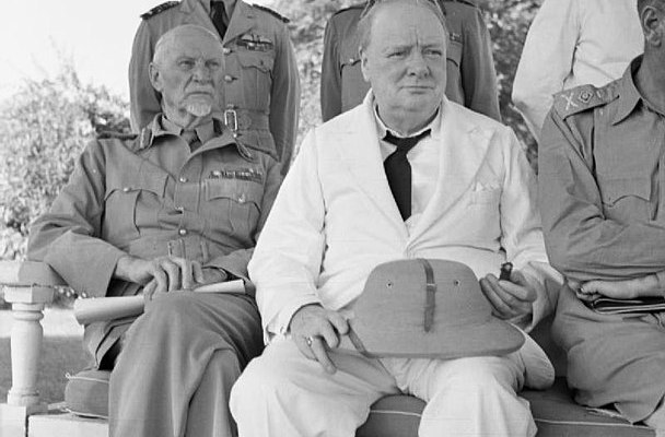 Image: Winston Churchill with Field Marshal Smuts and behind, Air Chief Marshal Sir Arthur Tedder (left) and Sir Alan Brooke, at the British Embassy in Cairo, 5 August 1942 via wikimedia commons.