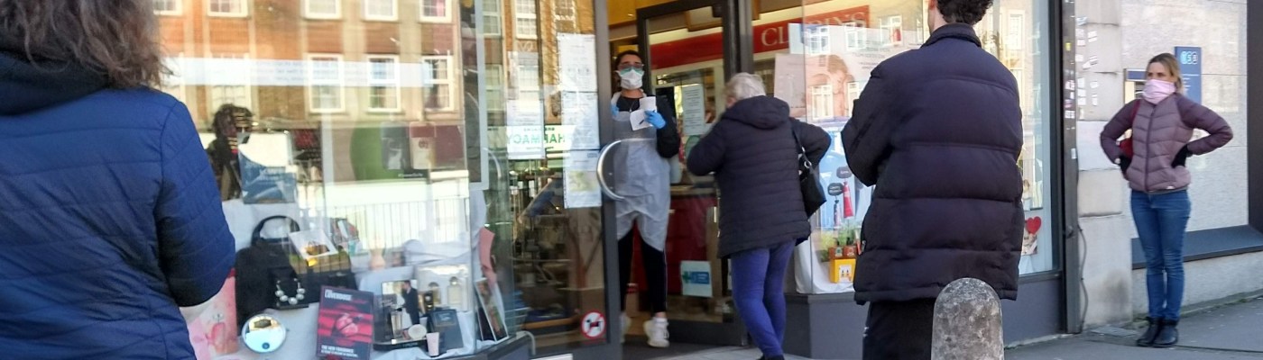 Featured Image – Social Distancing at a London pharmacy, March 2020
