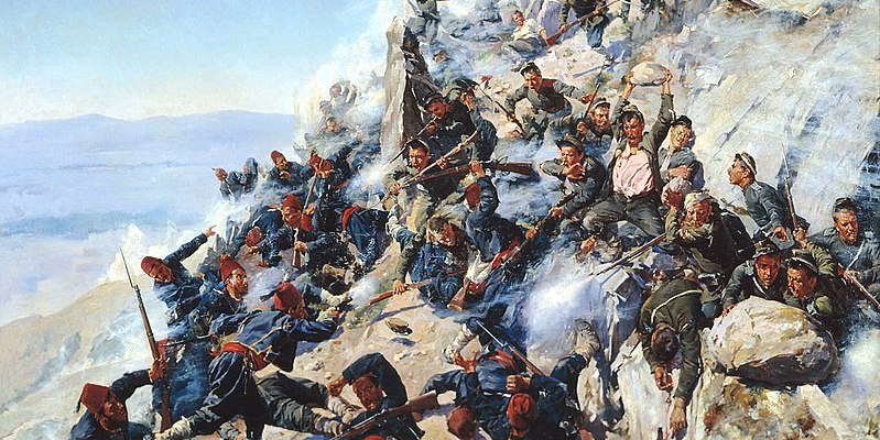 Featured Image – Russian and Bulgarian troops defend the Shipka Pass against the Turkish Army, August 1877, during the Russo-Turkish War of 1877-1878